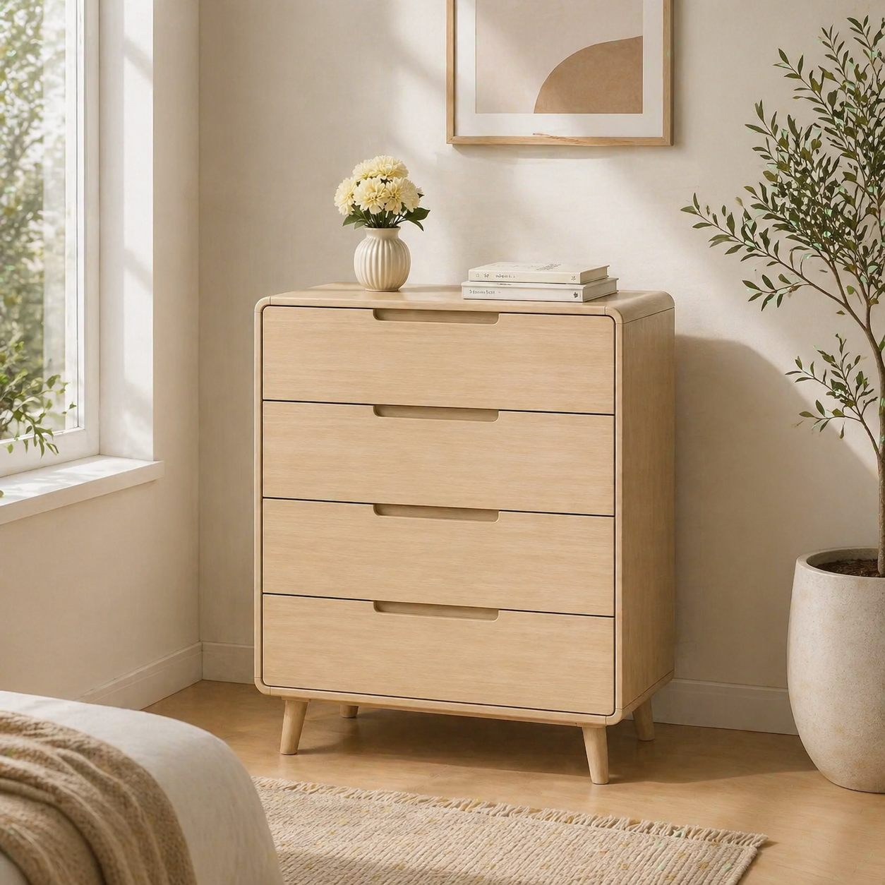 Kommode Holz Natur Minimalistische Kommode mit klarer Struktur. Perfekt fuer moderne Einrichtung.