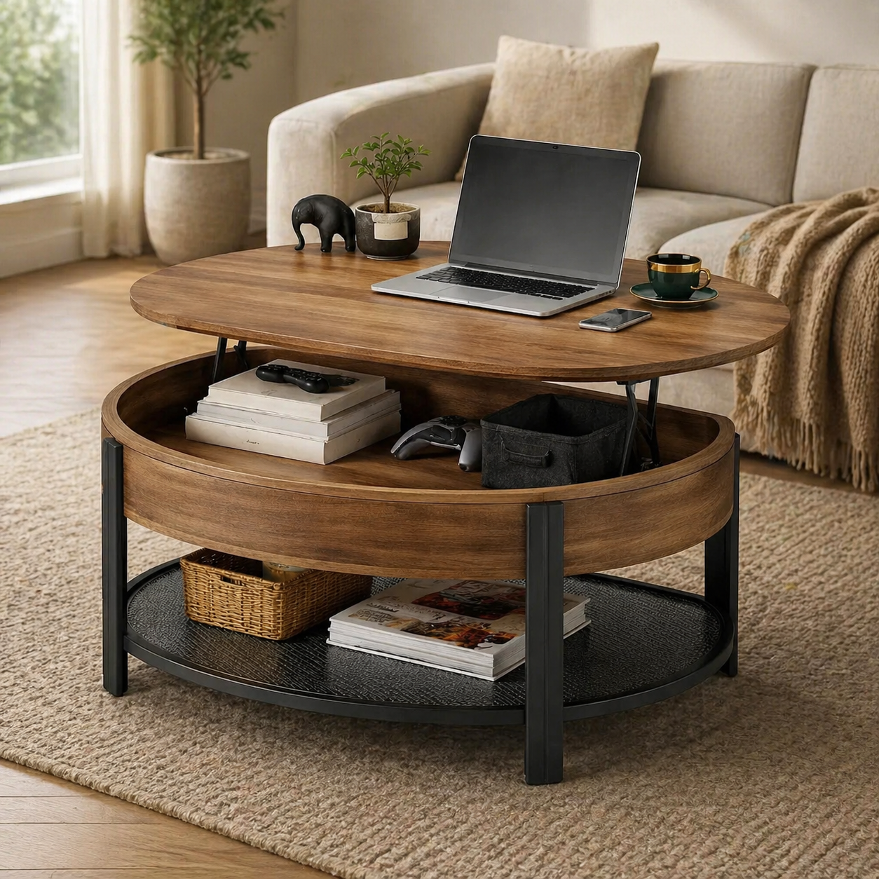 Couchtisch Rund Holz Metall Braun